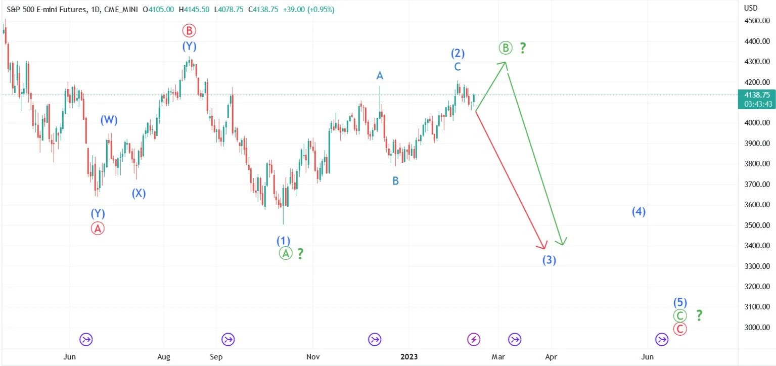 So it looks like we're lining up for a bit of an explosive move tomorrow for the CPI print, we're either in a minute wave 2 of minor wave 2 of intermediate wave 2, which means if we're right we could be about the start the slide for intermediate wave 3! 4150 is looking like a great area to sell! If it happens to be our alternative count in green then we will first drop to around 3950 before moving higher to the 4300 area. Tomorrow should be interesting!